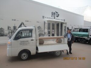 1 「関西パビリオン」前の広場に設置されていた『兵庫県産丸太・ベンチ』 (軽トラで引取り) IMG_8020 ◎_R ◎
